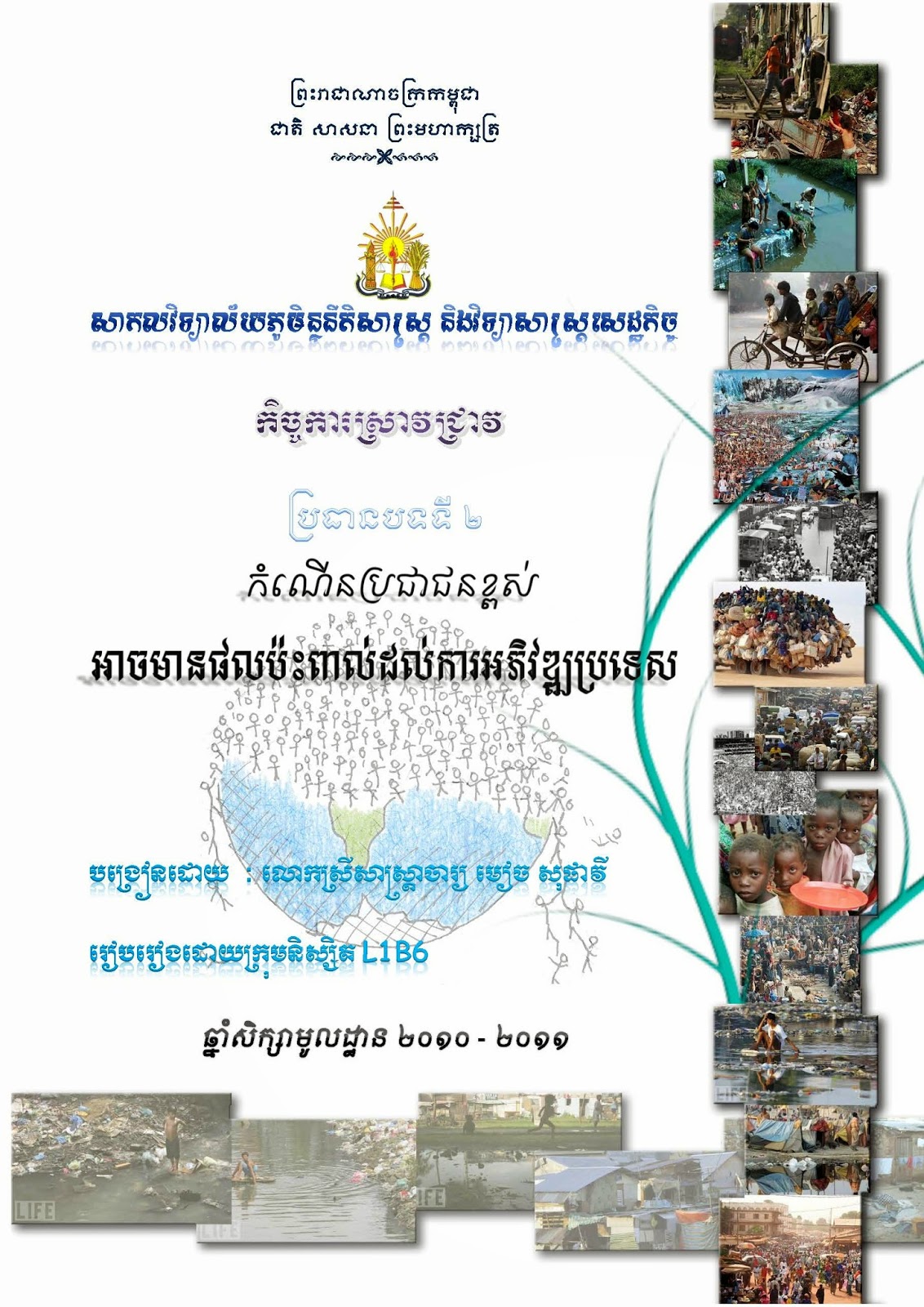 ប្រធានបទៈ កំណើនប្រជាជនខ្ពស់អាចមានផលប៉ះពាល់ដល់ការអភិវឌ្ឍប្រទេស (Overpopulation's impact on country's development Khmer PDF)